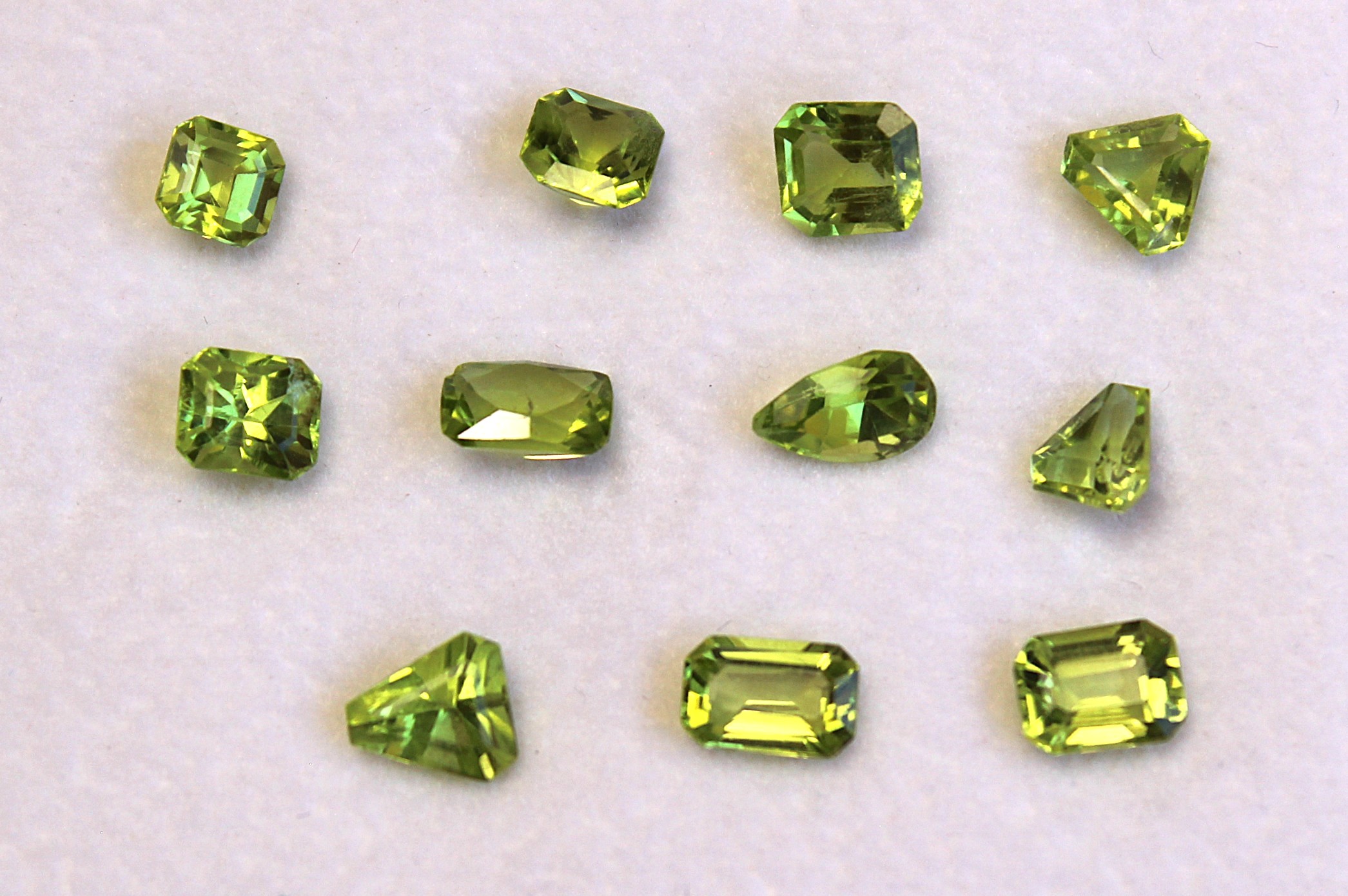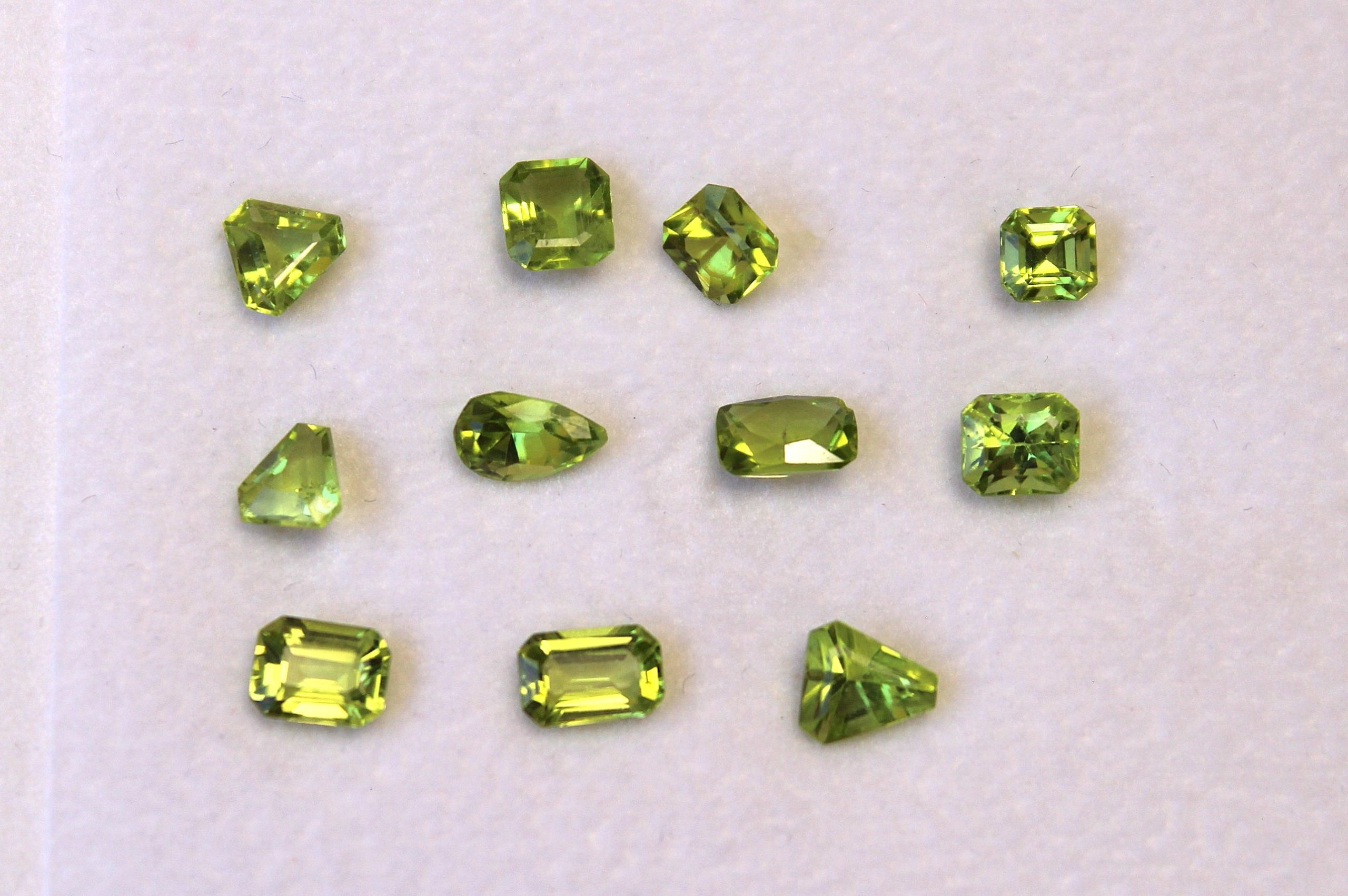 Charming lot of light to medium yellowish green Peridot in various cuts weighting less than 1.00 ct. All Gemstones show good cut.