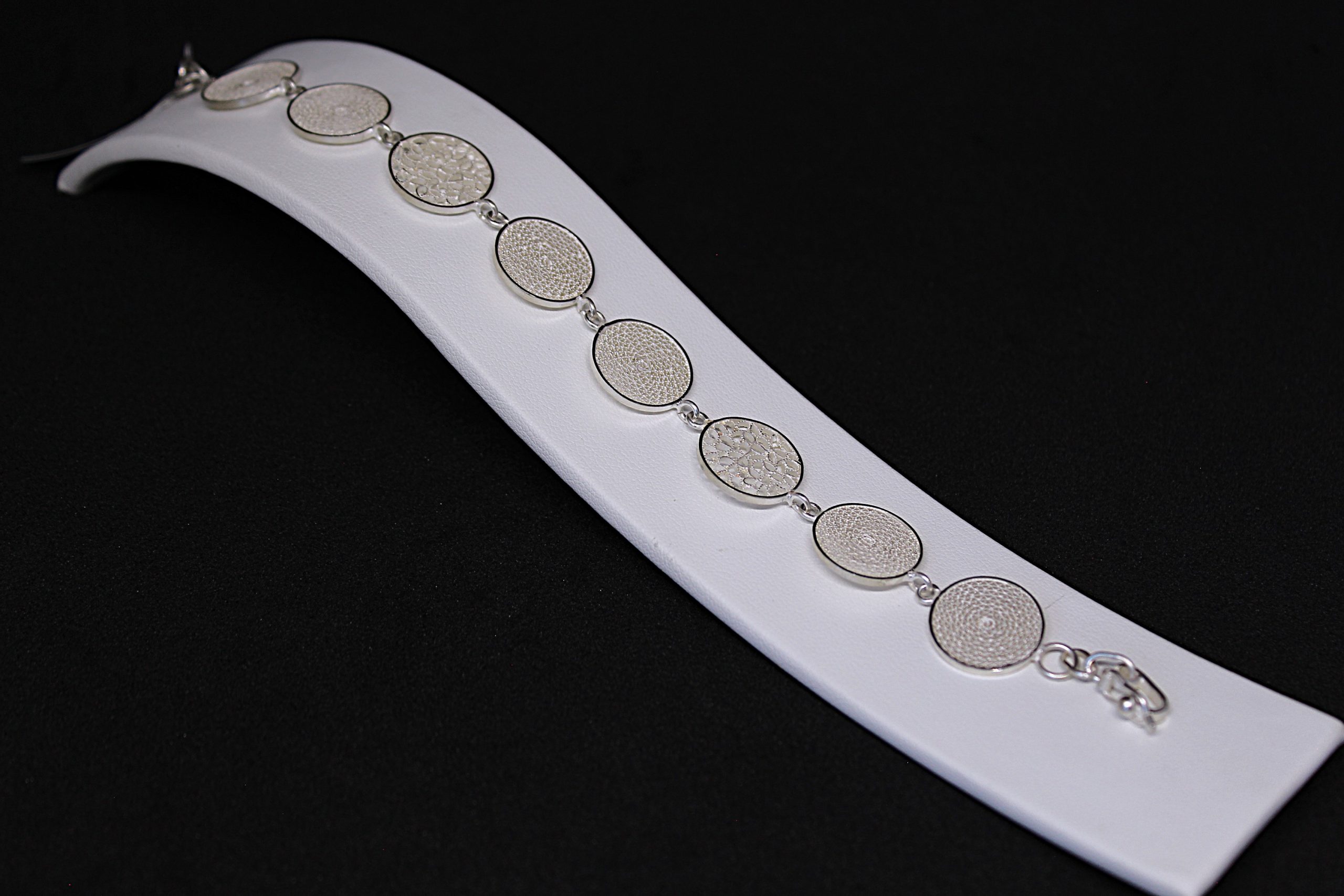 Beautiful bracelet worked in 925 sterling silver made with the filigree technique. Filigree is a goldsmith technique that arrived in America in colonial times. This piece has been carefully crafted by artisans in the Andes of South America upholding am ancient technique. Each handcrafted circle pays tribute to the strength of nature, time for reflection and resilience during winter season.